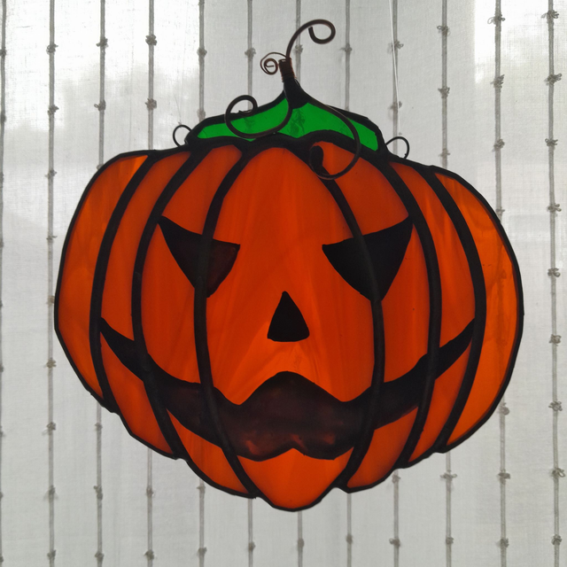 Get into the spooky spirit with this captivating decorative glass pumpkin! Add this bewitching piece to your collection and watch it enchant your window, keeping Stringy Jack at bay.