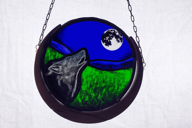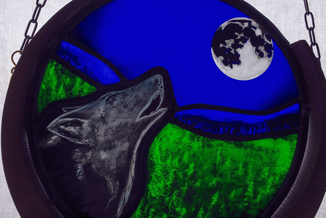 πŸŒ•πŸΊ Embrace the Beauty of Nature: Stained Glass Wolf Howling at the Moon Roundel! πŸŒ•πŸΊ